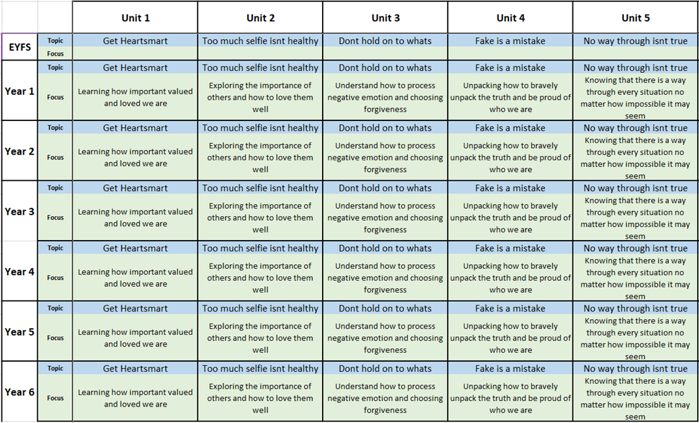 Miss Porter says… we have adopted the use of the Heart Smart Curriculum as a creative approach to build children's character and emotional literacy. Using the 5 core values of Heart Smart, children will learn the importance of showing love to themselves and others, how to bravely communicate the truth, how to restore and repair relationships with others, as well as processing negative feelings. I want the children to develop confidence in themselves and have a range of strategies to support them through different situations.