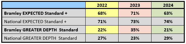 Although data can be compared year on year to see how we are improving as a school, each cohort of children is very different. It is important to remember that varying levels of SEN, levels of family support and numbers in classes can have an impact on each set of data.