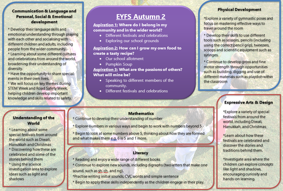 In Early years we work toward 3 different aspiratons throughout the school year, dipping into different parts of each aspiration each term, please find the aspirations below:
