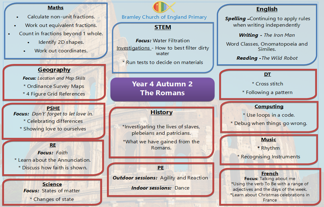 Our Geography topics in Year 4 focus on Volcanoes and where they are most likely to occur in the world, as well as the living earth in our Tree of Life topic. We have 4 exciting History topics where we study The Olympics, life in Ancient Rome, The Ancient Maya and then a gruesome term focusing on the Vikings. An exciting year where we learn a lot about how the world has developed.